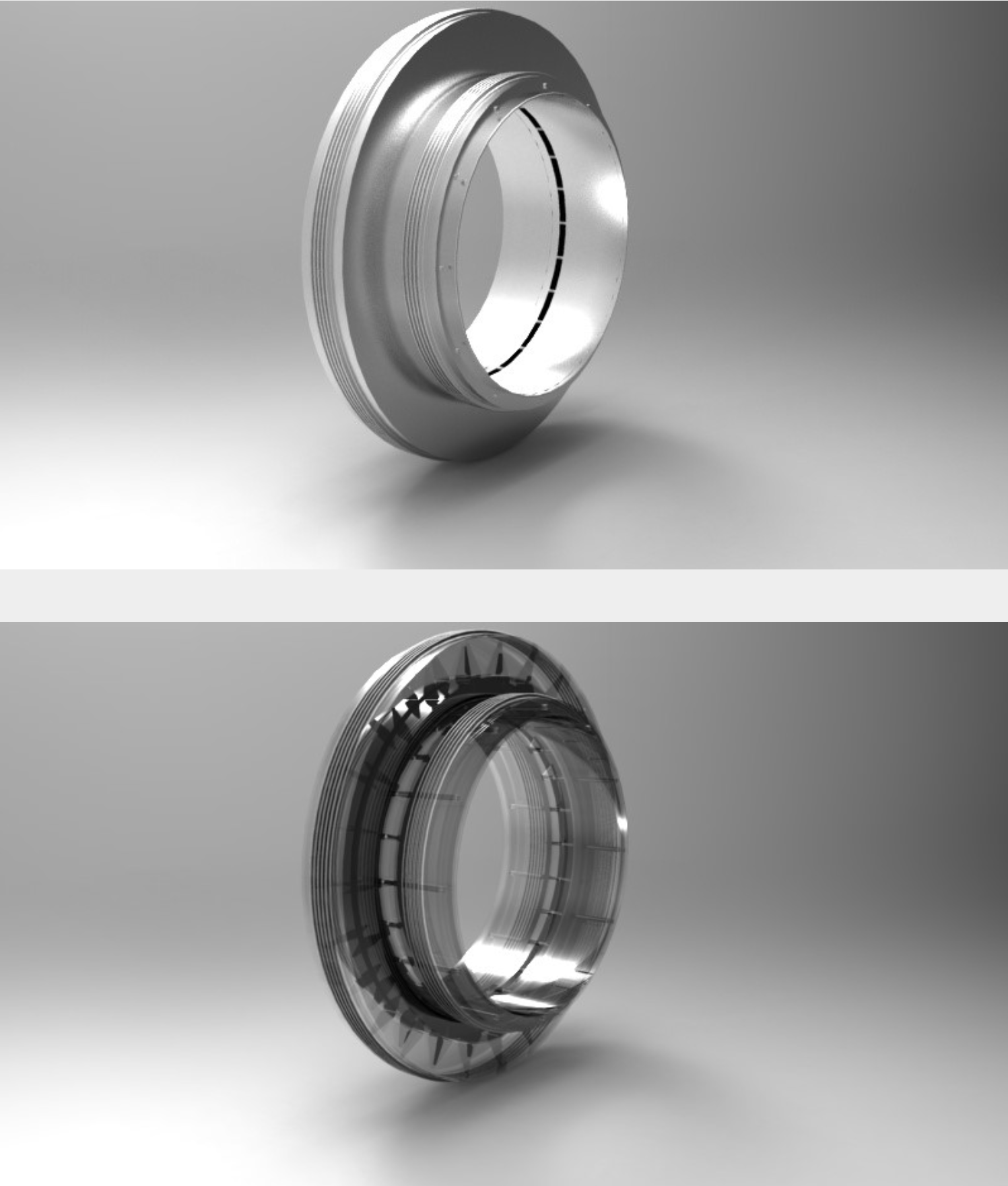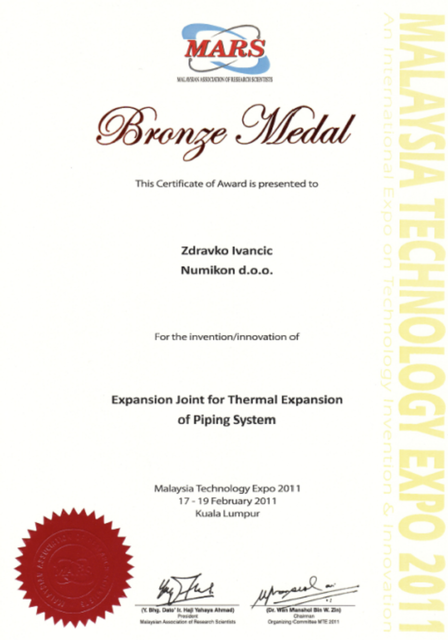 The pictures on the left show our innovation, which has received several awards. It is an in-line pressure balanced expansion joint for piping and ducting systems with circular cross section and internally located tie rods.